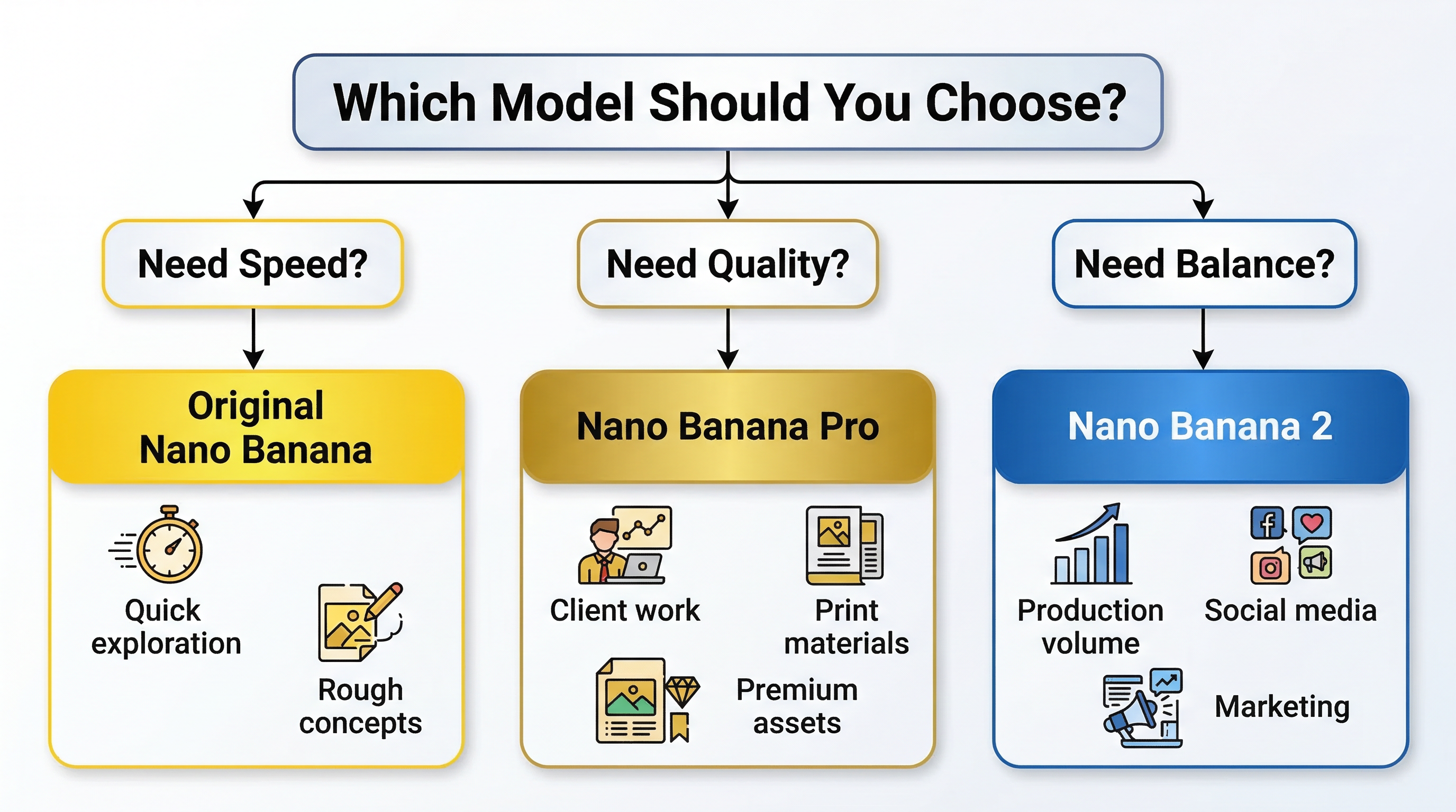The most effective strategy combines multiple models strategically. Start with Nano Banana 2 for ideation and rapid iteration, generating multiple concept variations quickly to explore creative directions. Once you identify promising concepts, refine them further in Nano Banana 2, taking advantage of its good quality and fast iteration speed. When you've finalized your concept and need the absolute best quality for final delivery, regenerate the image using Nano Banana Pro.